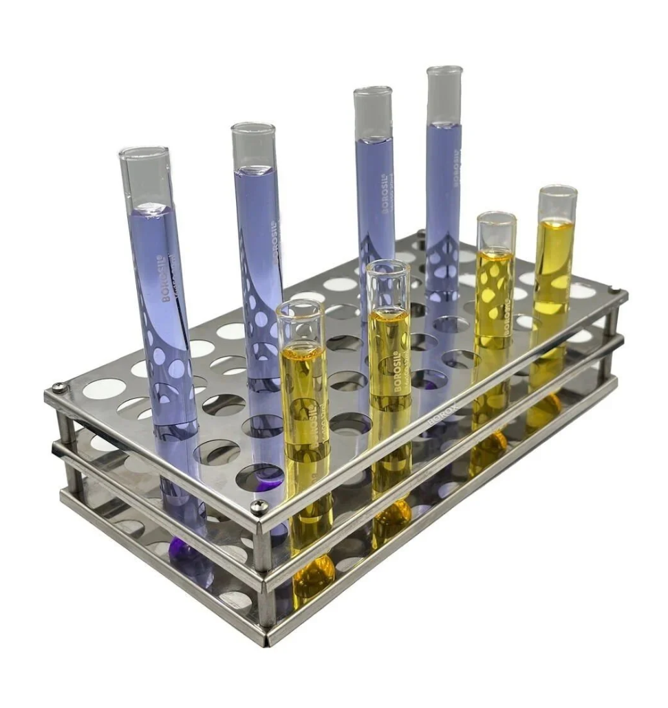 Laboratuvar Tüplük – Test Tüp Standı 3 Katmanlıdır PP Tüp Rack – Otoklavlanabilir Yüksek Kalite SS’den Üretilmiştir – 16 mm Çapında Tüpler için Uygundur Delik Adedi: 50 AISI 304 Paslanmaz Çelikten Üretilmiştir 240x125x51mm – Kalınlık: 0,85mm – 1 Adet/Paket – Sıfır Ürün